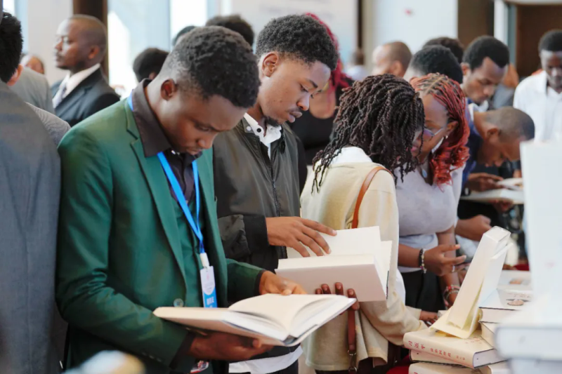 ▲肯尼亚读者在活动现场取阅新书