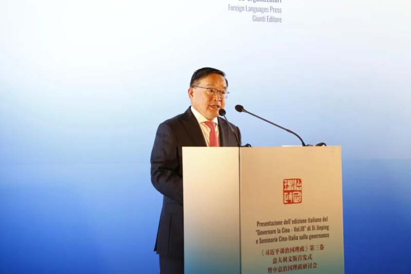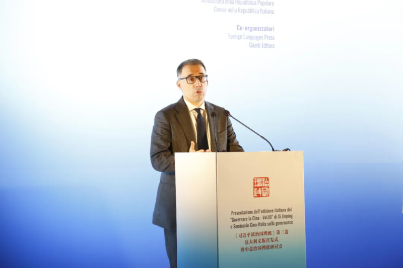 当地时间11月13日下午,由国务院新闻办公室、中国外文局和中国驻意大利大使馆主办,外文出版社、意大利君提出版社承办的《习近平谈治国理政》第三卷意大利文版首发式暨中意治国理政研讨会在意大利首都罗马举行。