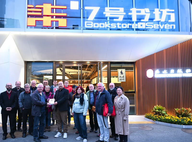 德国《我们的时代》报社读者团一行还参观了中国国际出版大厦7号书坊。王京强代表外文出版社向德方读者团赠送了《习近平谈治国理政》第一至四卷德文版图书。