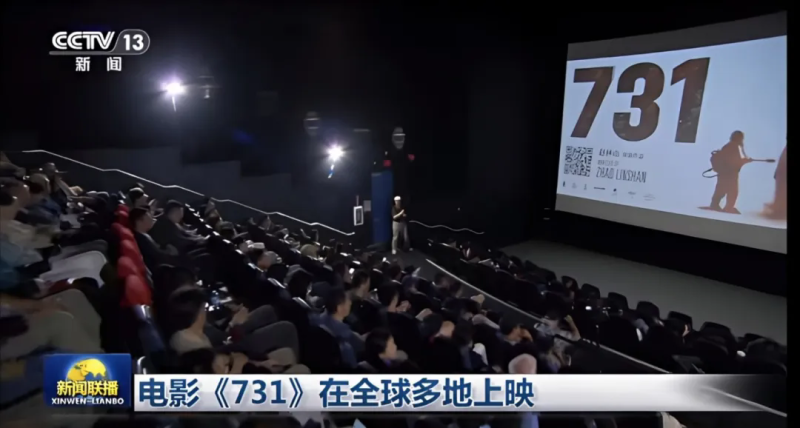 9月20日央视新闻联播报道:反映侵华日军第七三一部队细菌战罪行的电影《731》当地时间9月18日在美国纽约、洛杉矶,加拿大渥太华、温哥华、多伦多,澳大利亚悉尼、墨尔本等地上映。二战期间,这支侵华日军细菌战部队以中国哈尔滨为大本营,实施了严重的反人类暴行。多国观众表示,影片充分反映了侵华日军的暴行,提醒人们铭记历史、不能让暴行重现,希望世界各地更多人看到这部电影。