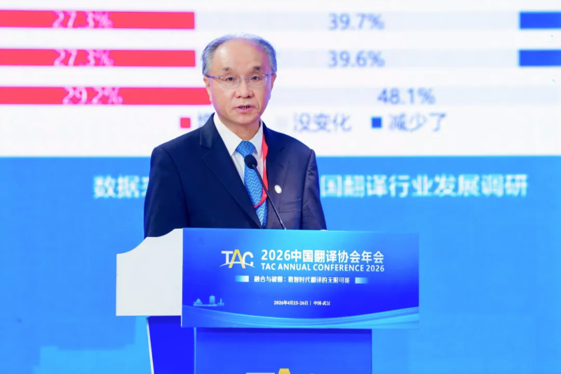 4月25日至26日,2026中国翻译协会年会在湖北省武汉市举行。中国外文局局长常勃,第十四届全国政协常委、中国翻译协会会长杜占元,中共湖北省委常委、宣传部部长琚朝晖,武汉大学党委书记朱孔军出席开幕式并致辞,国际翻译家联盟主席纪尧姆·德讷夫伯格(Guillaume Deneufbourg)通过视频方式致辞。