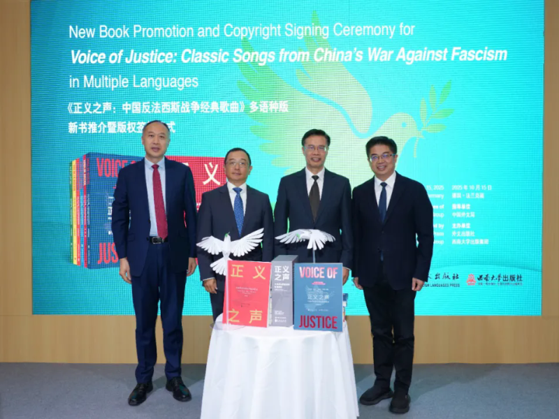 《正义之声:中国反法西斯战争经典歌曲》多语种版新书推介暨版权签约仪式在法兰克福举行 当地时间10月15日上午,由中国外文局指导,外文出版社、西南大学出版集团主办的《正义之声:中国反法西斯战争经典歌曲》多语种… 2025-10-17